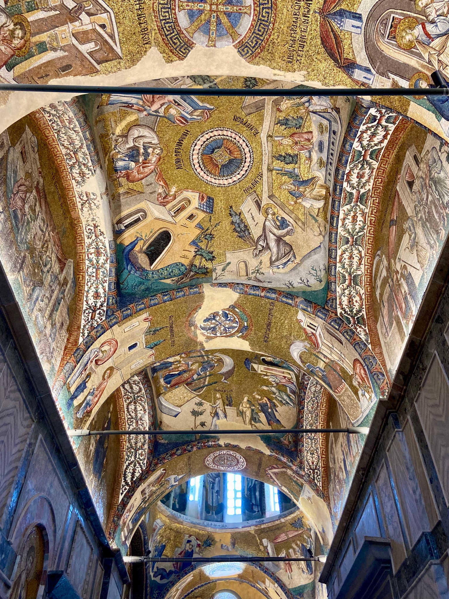 Şimdi ise freskler açıkta. Sadece ziyaretçilerin duvarlardaki mozaik ve fresklere yaklaşmasını engelleyen cam korkuluklar var.