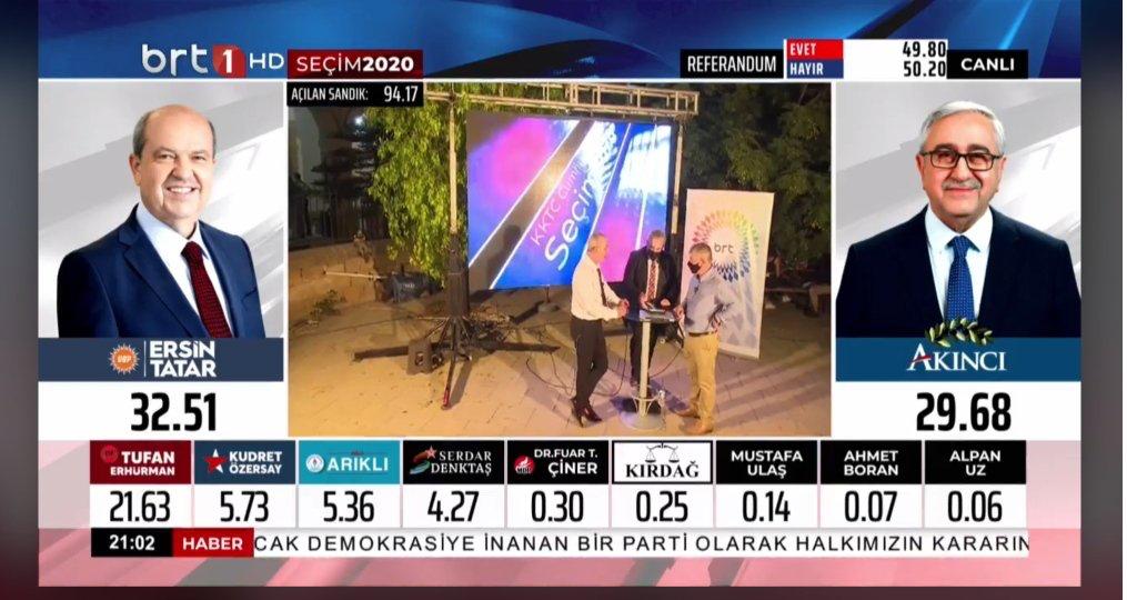 KKTC’de 11 adayın yarıştığı Cumhurbaşkanlığı seçiminde yüzde 50 barajını hiçbir aday aşamadı. İkinci tura, yüzde 32-33 bandında bir oyla seçimi ilk sırada tamamlayacağı görünen Başbakan ve Ulusal Birlik Partisi lideri Ersin Tatar ile yüzde 39-30 bandında bir oyla hemen onun ardından gelen Cumhurbaşkanı Mustafa Akıncı kaldı.