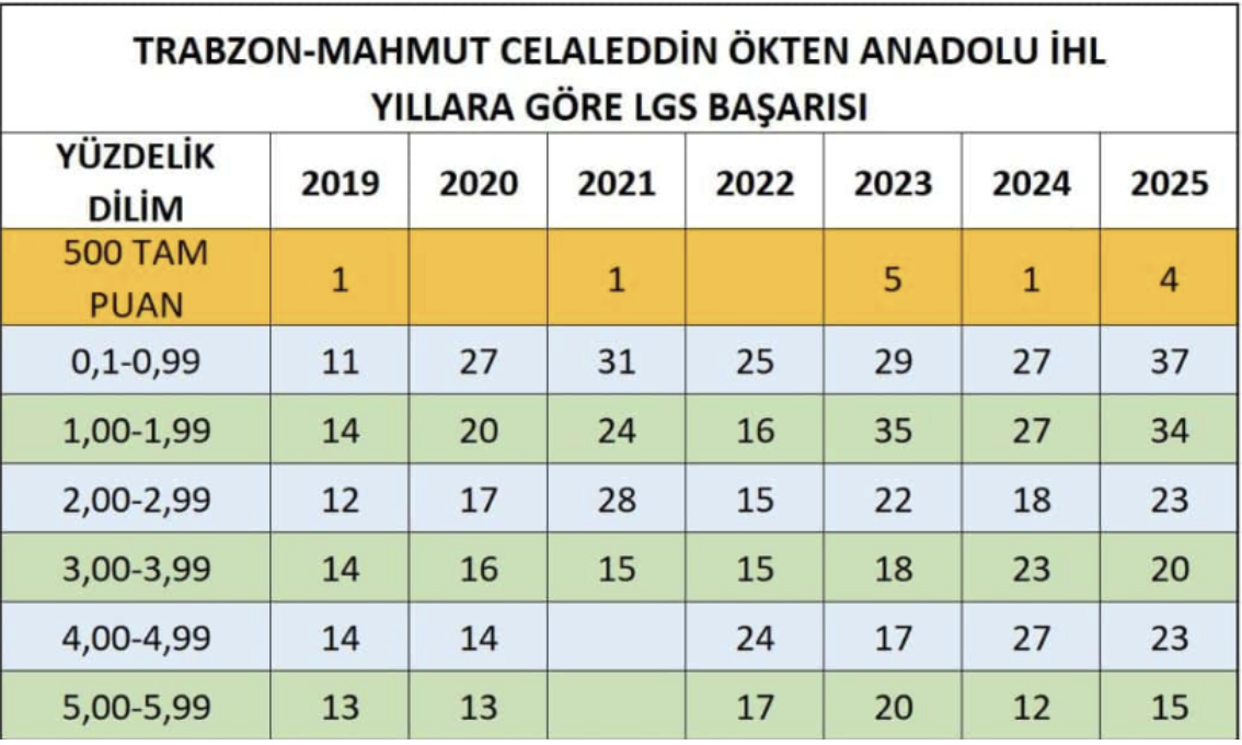 Aynı şekilde Trabzon Mahmut Celalettin Ökten Anadolu İmam Hatip Lisesi’nde 4 öğrenci 500 tam puan almış.