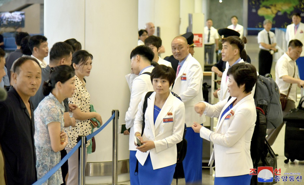 8 yıl sonra Yaz Olimpiyat Oyunları’na katılan Kuzey Kore’nin sporcuları, ülkenin bayraklarıyla aynı renkte ve üzerinde Kuzey Kore bayrağı olan kıyafetlerle ülkeden ayrıldı.