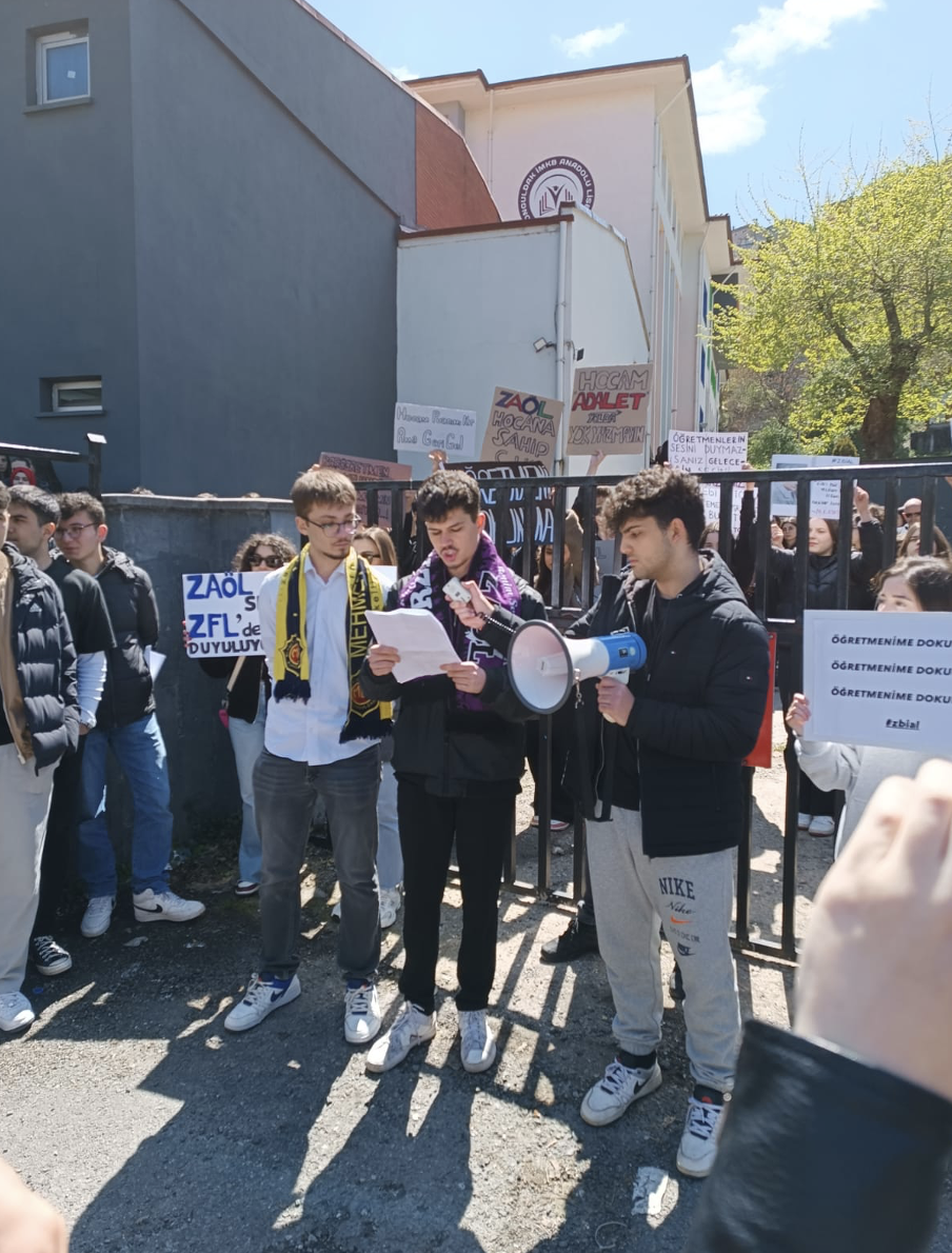 Zonguldak’ta Mehmet Çelikel Lisesi, Zonguldak Fen Lisesi ve Zonguldak Borsa İstanbul Anadolu Lisesi öğrencileri, öğretmenlerin sürgününe karşı ortak eylem yaptı.