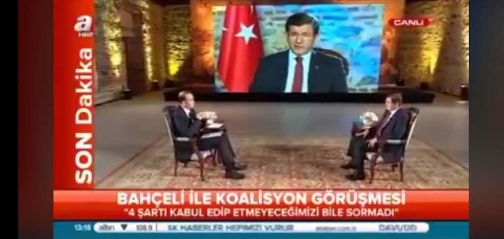 Dönemin Başbakanı Ahmet Davutoğlu, 19 Ekim (2015) günü şimdi çıkması imkânsız olan A Haber ekranlarında televizyonun Ankara Temsilcisi Murat Akgün’ün sorularına cevap vermişti.