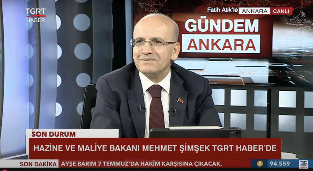 Hazine ve Maliye Bakanı Mehmet Şimşek, TGRT Haber’de ekonomiye yönelik değerlendirmelerde bulundu.