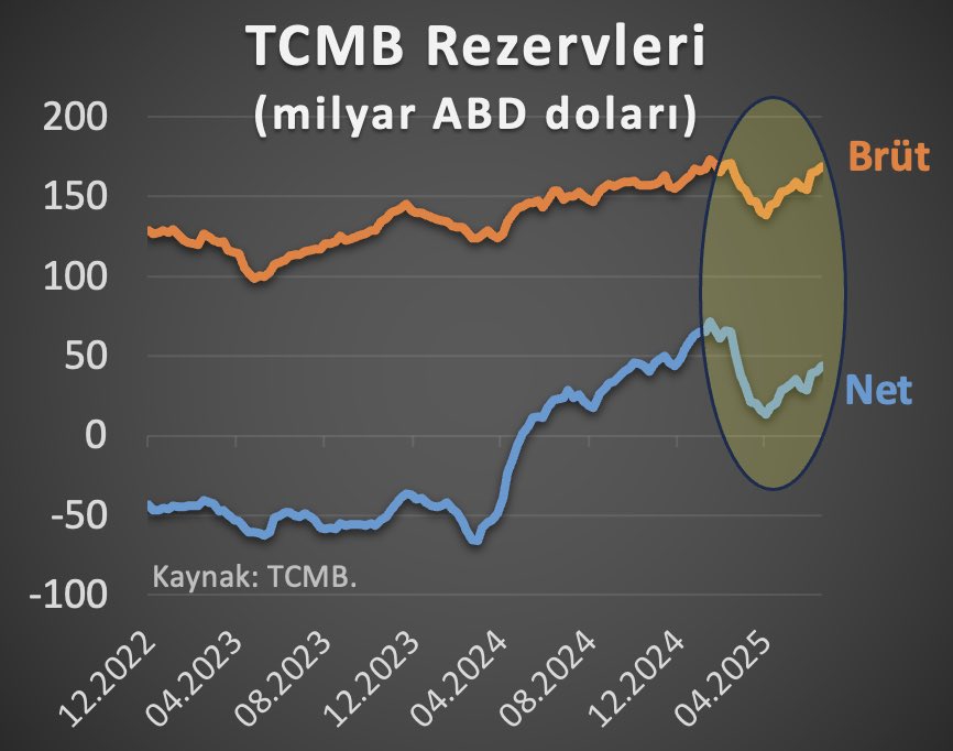 2022’den bu yana Merkez Bankası’nın brüt ve net rezerv trend grafiğini paylaşan Kara, şunu kaydetti: