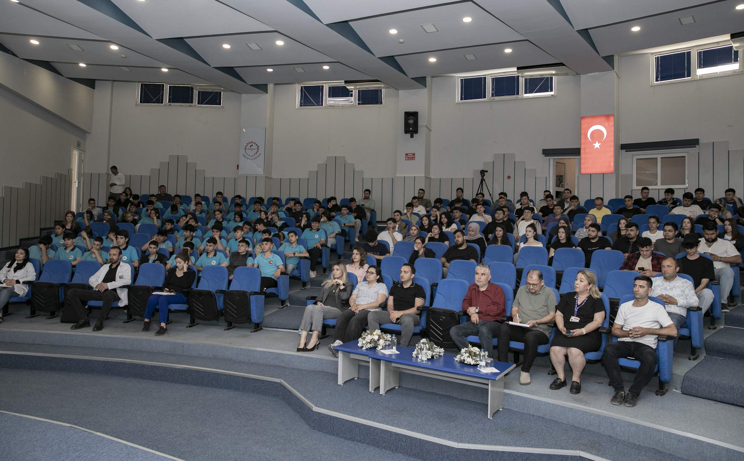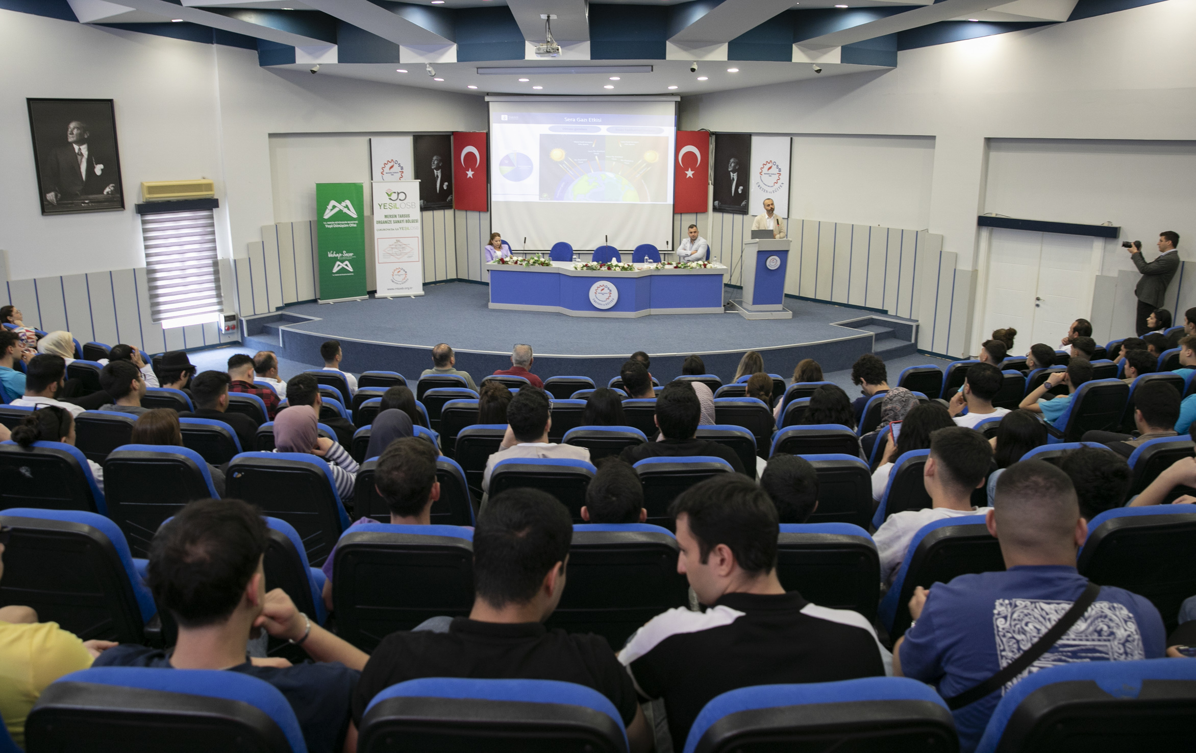 MTOSB Konferans Salonu’nda düzenlenen panele; Mersin Büyükşehir Belediyesi İklim Değişikliği ve Sıfır Atık Dairesi Başkanlığı yetkilileri, Tarsus Üniversitesi’nden akademisyenler, MTOSB yetkilileri ile lise ve üniversite öğrencileri katıldı. Panelde Büyükşehir Belediyesi İklim Değişikliği ve Sıfır Atık Dairesi Yeşil Dönüşüm Ofisi Koordinatörü Çevre Mühendisi Dr. Sinan Can, Tarsus Üniversitesi Çevre Koruma Teknolojileri Bölümü Öğretim Üyesi Dr. Yasin Özay ve MTOSB Çevre Müdürü Çevre Yüksek Mühendisi Eda Alabaş sunum yaparken; enerji verimliliği, atık ve su yönetimi, çevresel etki azaltımı ve sürdürülebilir planlamayı içinde barındıran yeşil işlerin, geleceğin meslekleri olacağı katılımcılarla paylaşıldı.