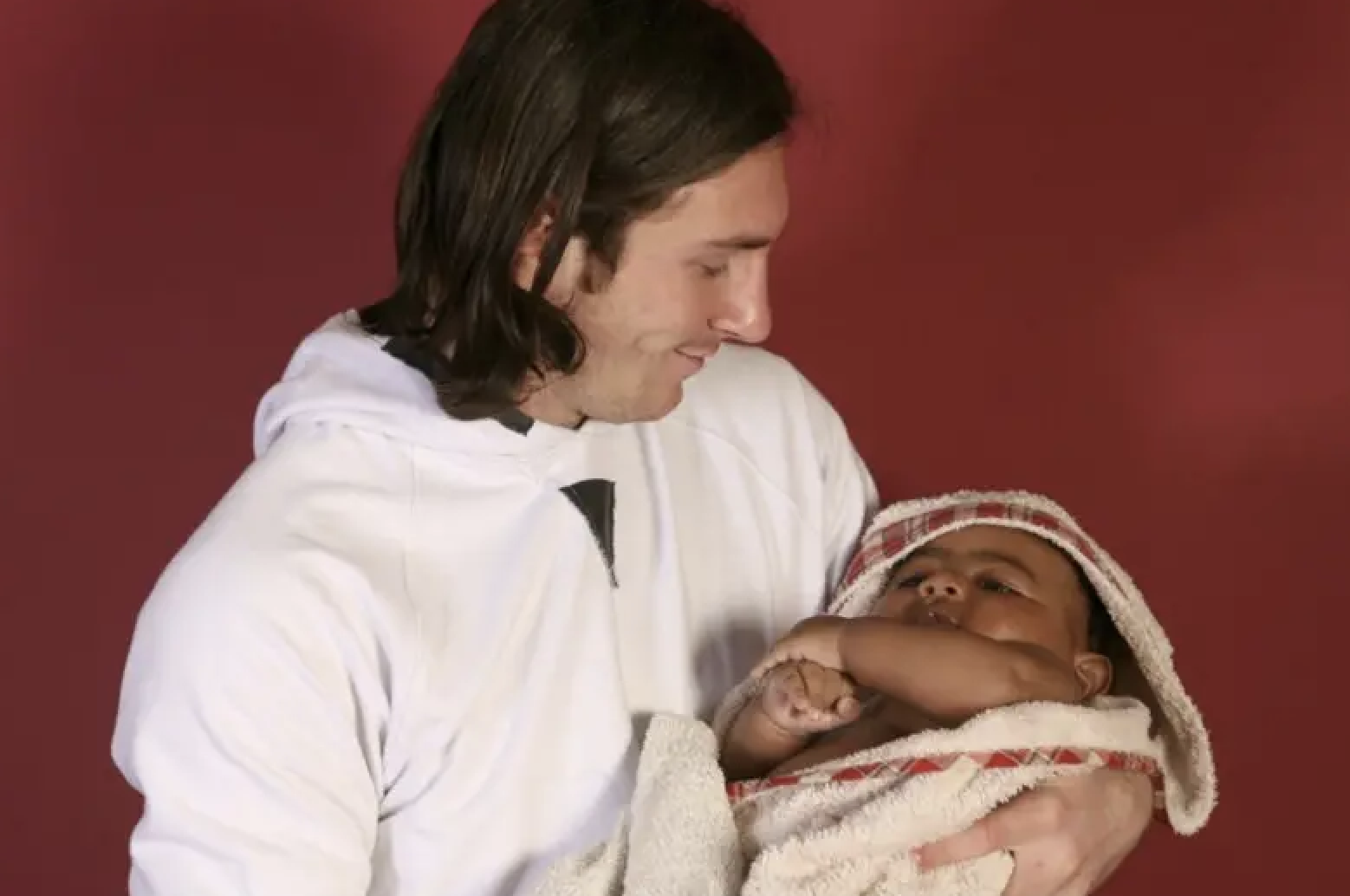 2007 yılında genç Lionel Messi, bir bebekle birlikte Barcelona’nın Camp Nou stadyumunun soyunma odasında bir yardım kuruluşunun resimli takvim çekimleri için poz verdi.