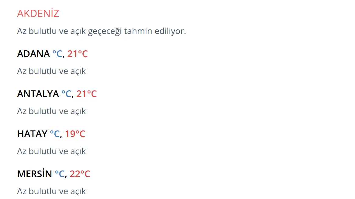 Türkiye’de bugün beklenen hava durumu şu şekilde: