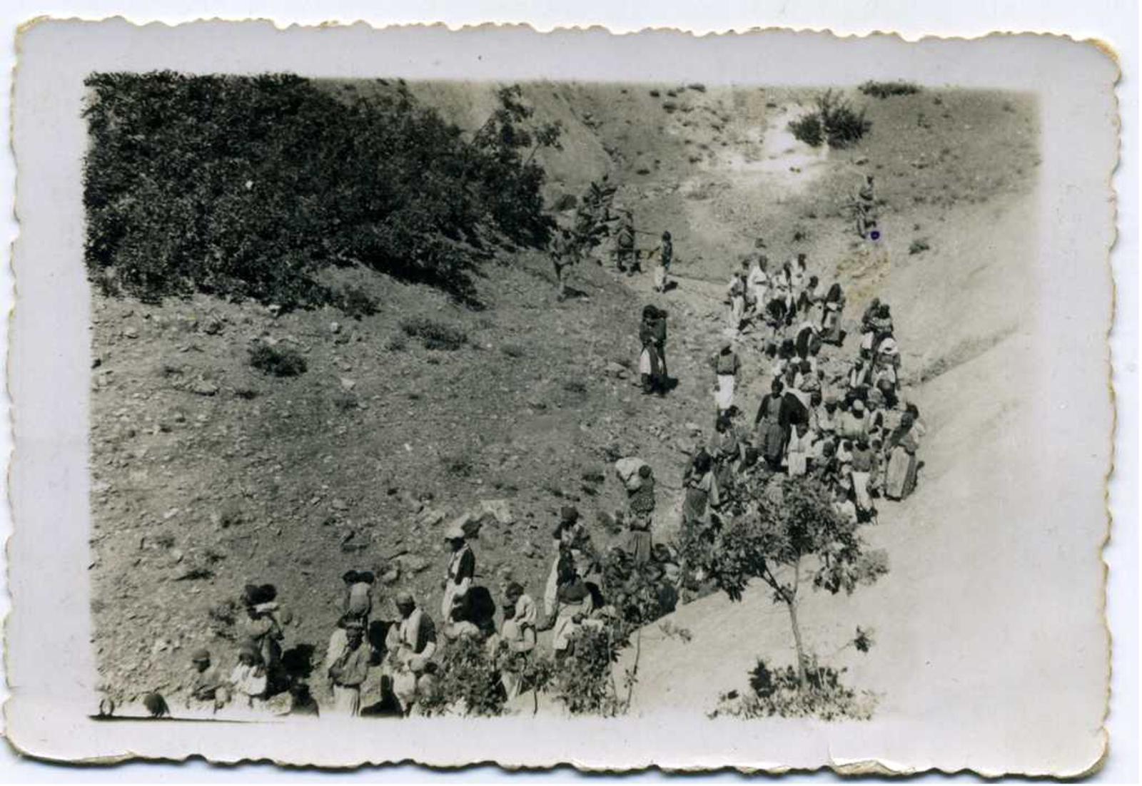 Çünkü köylüler kayalığa doğru yürütülürken bir subayın çektiği fotoğraf karesi var. Ve arkasına yazdığı not…