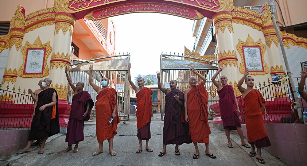 Yıllardır şiddete başvurmadıkları protestolarla haksız buldukları eylemleri protesto eden Budist rahipler de gözaltına alınan eski Dışişleri Bakanı ve ülkenin fiili lideri Aung San Suu Çii’nin partisi Ulusal Demokrasi Birliği’ni (NLD) temsil eden kırmızı bayraklar taşıyarak darbeye tepki gösterdi.