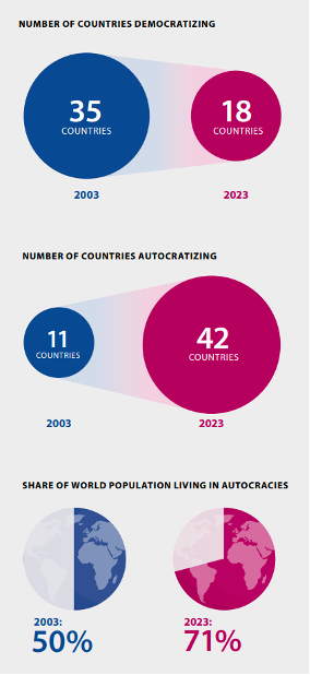 ABD’de Trump destekçileri 2020 seçimlerinden sonra seçimlerin hileli olduğunu iddia ederek sonuçların tescil edildiği bir Kongre oturumunu basmışken, Guatemalalılar seçim sonuçlarının iptal edilmemesi için 100 gün boyunca nöbet tutmuş, sandıklarına sahip çıkmıştı. Guatemalalıların demokrasiye sahip çıkmaları ve hakimlerden polise, askerlerden siyasetçilere imtiyazlarını kaybetmek istemeyen bir yolsuz elit çetesine “dur” demeleri dünyada pek duyulmadı, ilgi de çekmedi. İyi haberlerin reytingi biraz düşük. Fakat 17 milyonluk küçük bir Orta Amerika ülkesi olan Guatemala demokrasiye nasıl sahip çıkılacağını otoriterliğin giderek yayıldığı bir dünyaya çok net bir şekilde gösterdi. İyi de oldu. Guatemala’nın demokrasi hikayesi sadece uzaktan bakılacak romantik niş bir öykü değil. Dünyanın artık bu tür hikayelere fazlasıyla ihtiyacı var. Küresel demokrasi ölçümleri yapan V-Dem’in yeni raporuna göre 2003’ten 2023’e, demokratikleşen ülkelerin sayısı 35’ten 18’e düştü, otokratikleşen ülkeler 11’den 42’ye çıktı. 2003’te otokrasi altında yaşayan dünya nüfusu %50’ydi. Artık %71.