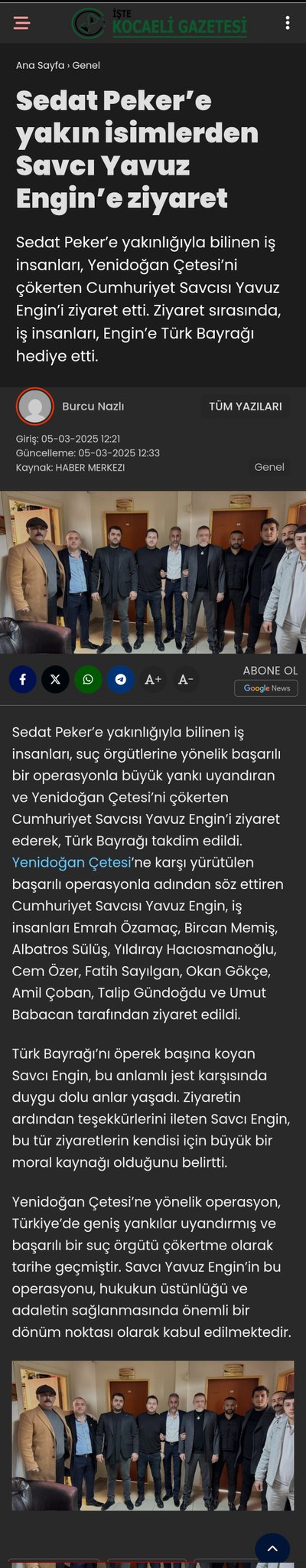 Sedat Peker’e yakınlığıyla bilinen bir grup iş insanı, Yenidoğan Çetesi davasının savcısı Yavuz Engin’i makamında ziyaret etti.