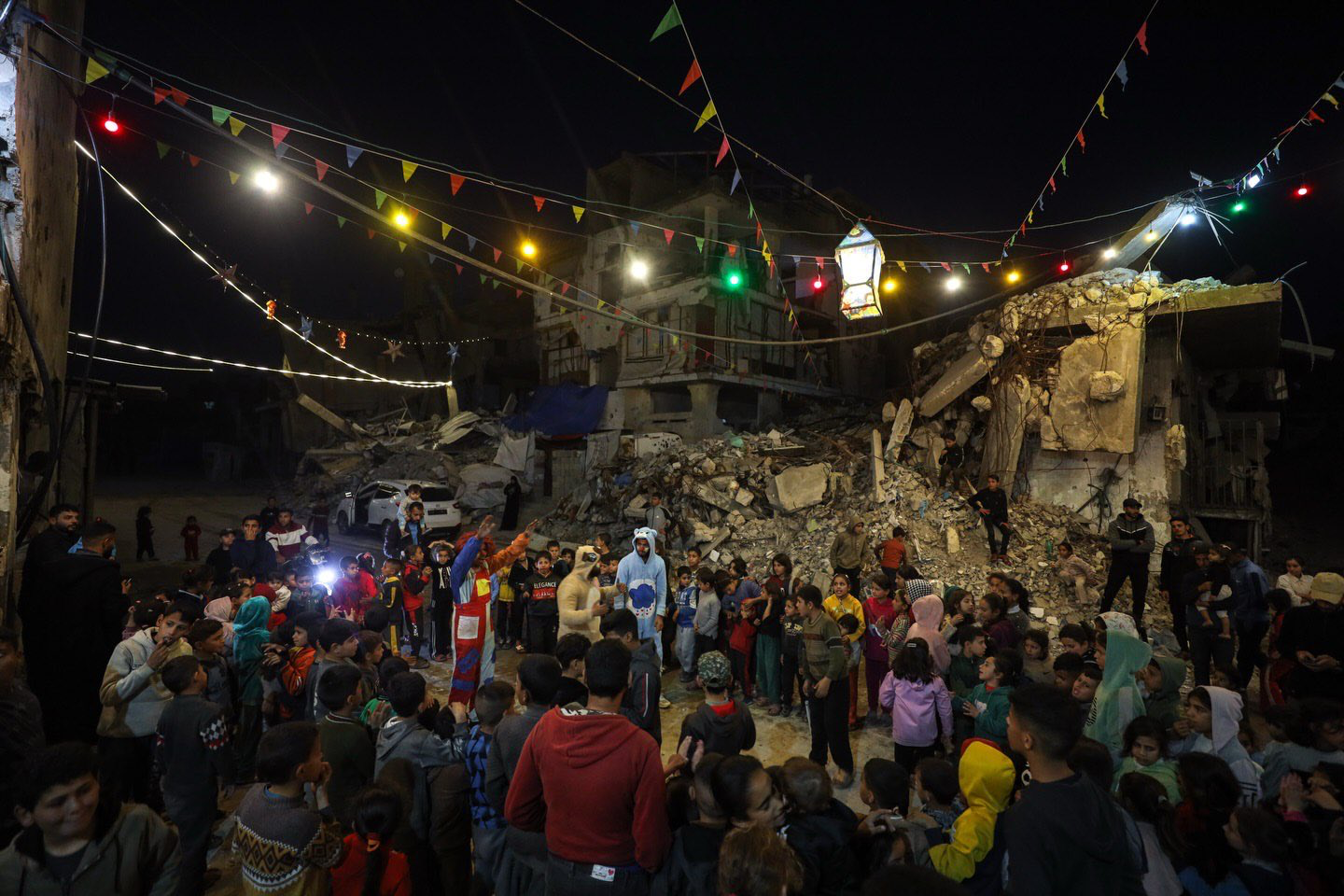 Öte yandan yıkıntılar arasında Ramazan için etkinlikler yapıldı.