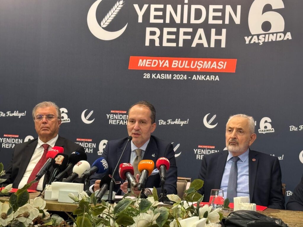 Yeniden Refah Partisi lideri Fatih Erbakan, partisinin 6.kuruluş yıldönümü etkinlikleri kapsamında “medya buluşması” etkinliği düzenledi, gazetecilerin gündemdeki sorularını yanıtladı.