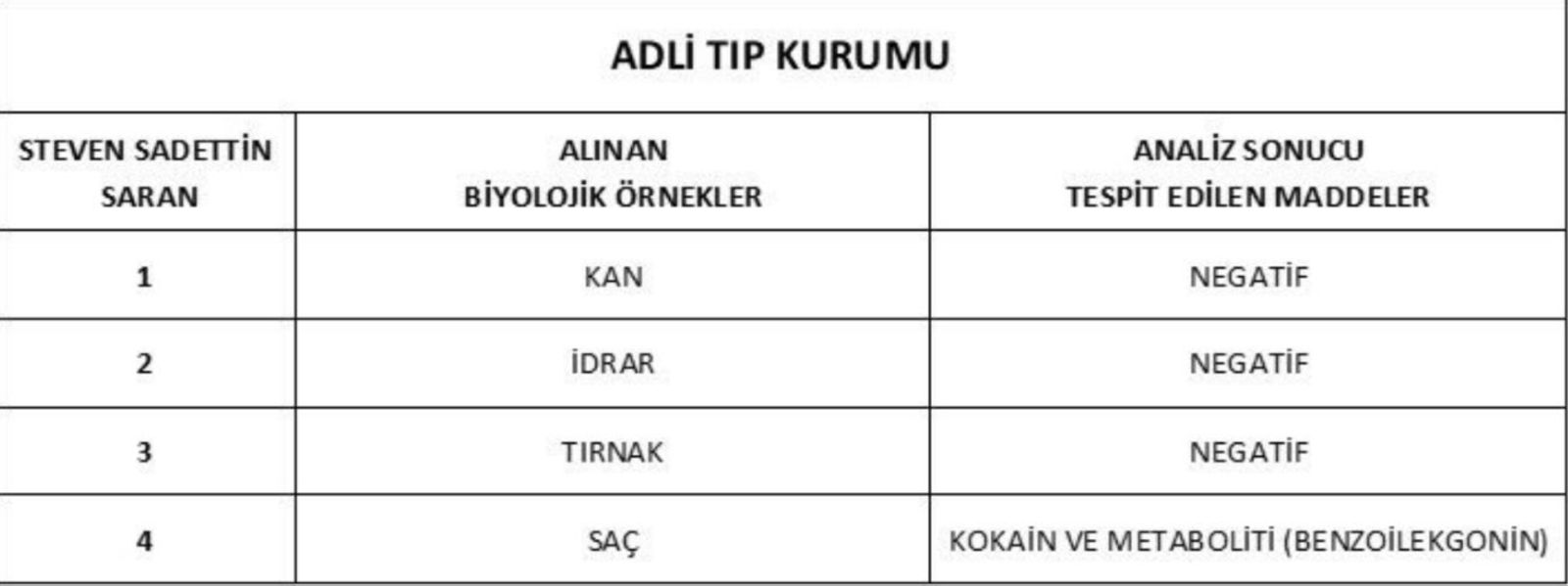 Saran’ın saç örneğinde yapılan incelemede ‘kokain pozitif’ olduğu belirlendi.