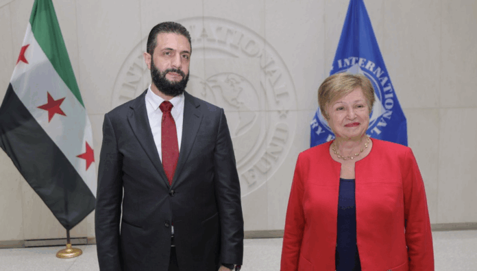 Şara, Cumartesi gecesi geç saatlerde Washington’a vardı. İlk olarak Uluslararası Para Fonu (IMF) Başkanı Kristalina Georgieva ve Amerika’daki bazı Suriyeli kuruluşların temsilcileriyle görüştü.