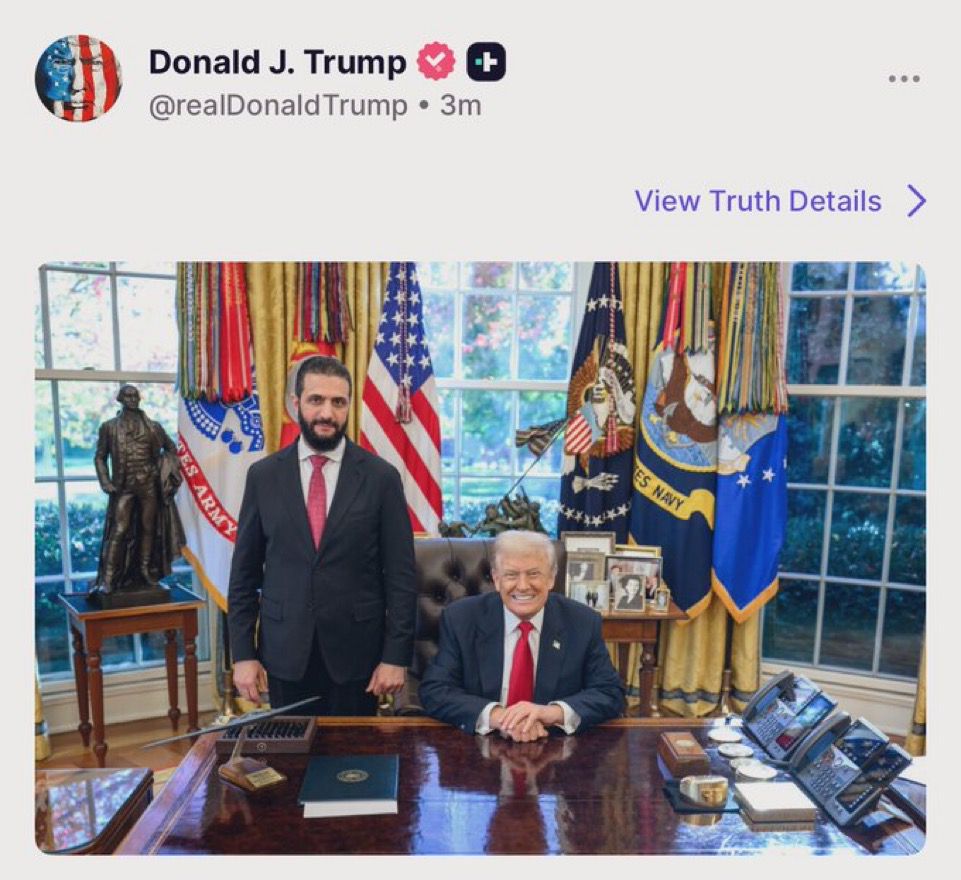 Suriye Cumhurbaşkanı Ahmed eş-Şara, bugün (10 Kasım) Beyaz Saray’da ABD Başkanı Donald Trump ile görüştü.