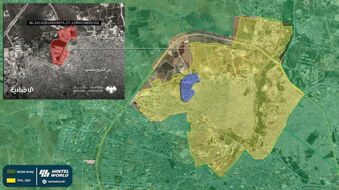 Bölgede yaşayan sivillere yönelik de acil bir uyarı yayınlayan Suriye ordusu, Şeyh Maksud ve Eşrefiye sakinlerinden derhal SDG mevzilerinden uzaklaşmalarını istedi. Halkın can güvenliği için çatışma bölgelerine yaklaşmamaları gerektiği ifade edildi.
