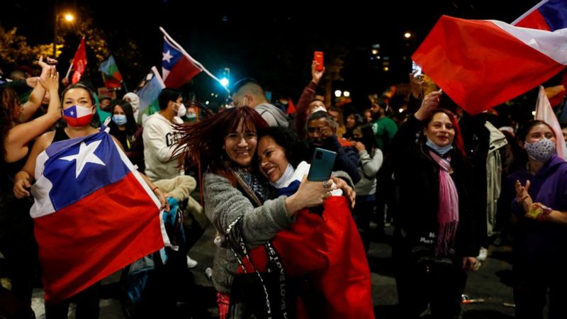 Anayasanın yeniden yazılmasına ilişkin referenadumda “Evet” oyunun ağırlıkta olacağını bekleyen binlerce kişi, başkent Santiago ve diğer kentlerde henüz sonuçlar açıklanmadan bir araya gelerek kutlamalara başladı.