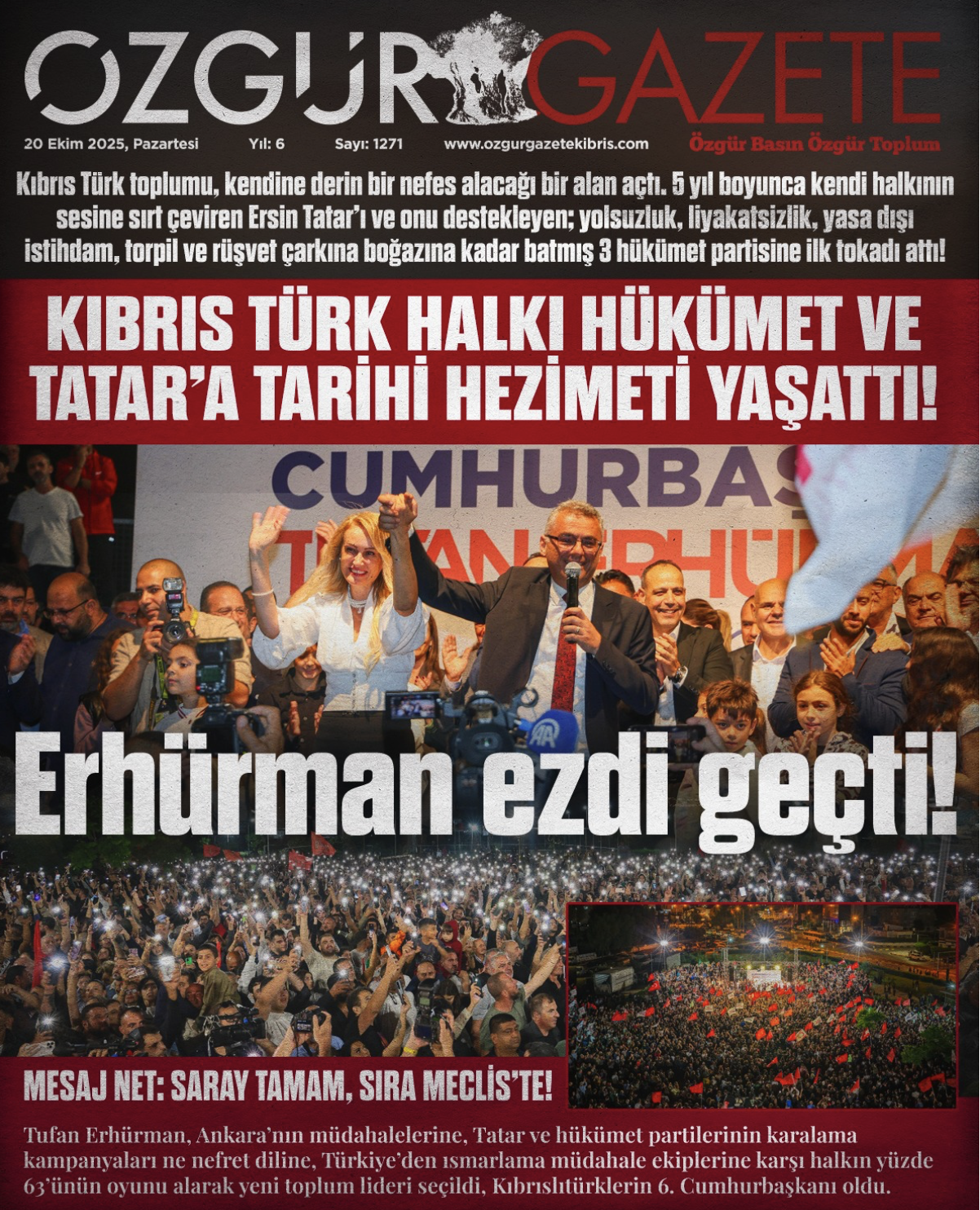 Özgür Gazete: Erhürman, Ankara’nın müdahalelerine, karalama kampanyalarına, Türkiye’den ısmarlama müdahale ekiplerine karşı yeni toplum lideri seçildi