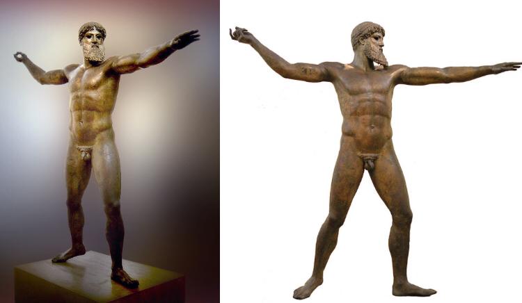 [26 Ağustos 2020] Yukarıda, “Artemision Bronzu” veya “Denizden Gelen Tanrı” diye bilinen heykeli görüyorsunuz. İçi boş dökme tunç. Yaklaşık iki metre boyunda. Ya Zeus ya Poseidon. Sağ elinde ne tuttuğunu bilemiyoruz. Poseidon olsa, üçlü zıpkınını; Zeus olsa şimşek ve yıldırımını fırlatacak. Günümüzde bilim camiasındaki eğilim, Zeus olduğu yönünde. 1926-28 yıllarında, Eğriboz adasının kuzeyindeki Artemision Burnu açıklarında bir batıktan çıkarılmış. Batığın tarihi İÖ 2. yüzyıl. Heykelin yapılış tarihi muhtemelen İÖ 5. yüzyıl. İlk, üniversite birinci sınıfta Sanat Tarihi aldığımda karşılaşmıştım (HART 12a olmalı). Helen Gardner’ın temel ders kitabı olarak kullandığımız Art Through the Ages’ında mı? Vincent Scully’nin The Earth, the Temple, and the Gods’ında mı? Sonradan çok gittim Atina’ya. Ulusal Arkeoloji Müzesi’ndeki yerinde, etrafında dolanıp durdum.