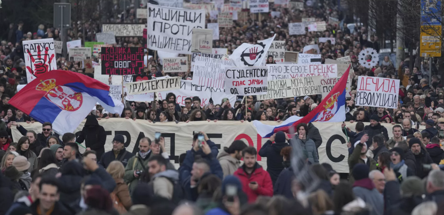Sırbistan’ın Novi Sad şehrindeki tren istasyonunda 15 kişinin ölümüne neden olan kazanın ardından hükümeti protesto eden öğrencilere, sayısı 100 bine varan insan eşlik etti.