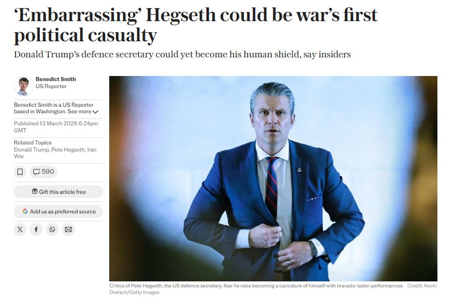 Ancak savaş uzar ve kamuoyu desteği hızla erirse, eleştirilerin ilk hedefi de yine Hegseth olabilir.