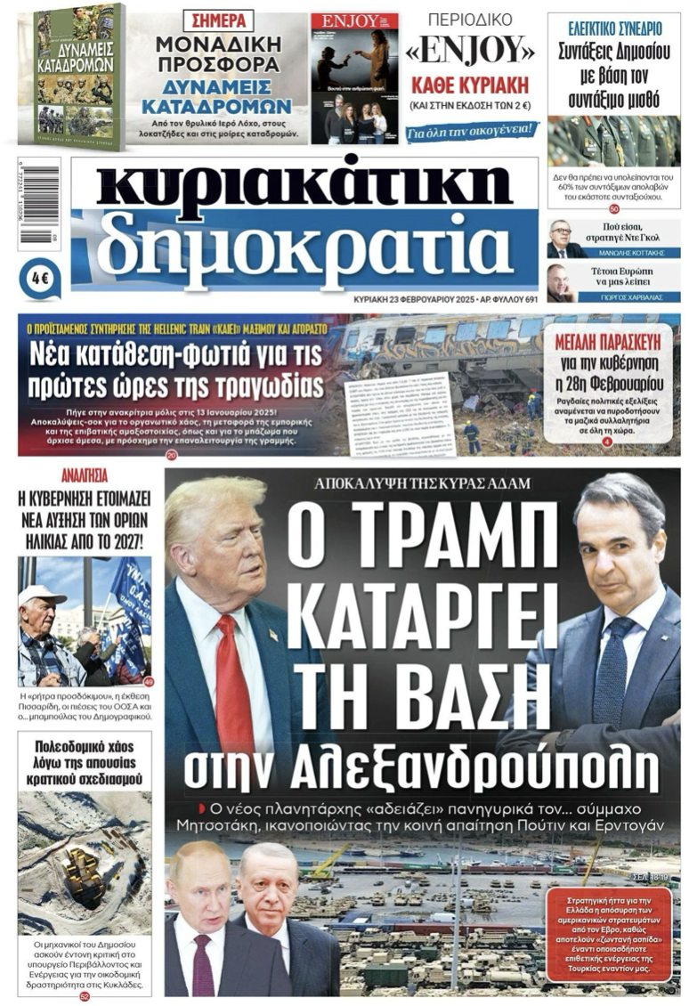 Yunan gazetesi Dimokratia’da yer alan habere göre, ABD Başkanı Donald Trump, Rusya Devlet Başkanı Vladimir Putin ve Cumhurbaşkanı Recep Tayyip Erdoğan’ın talebi üzerine Dedeağaç Üssü’nün kapatılması emrini verdi.