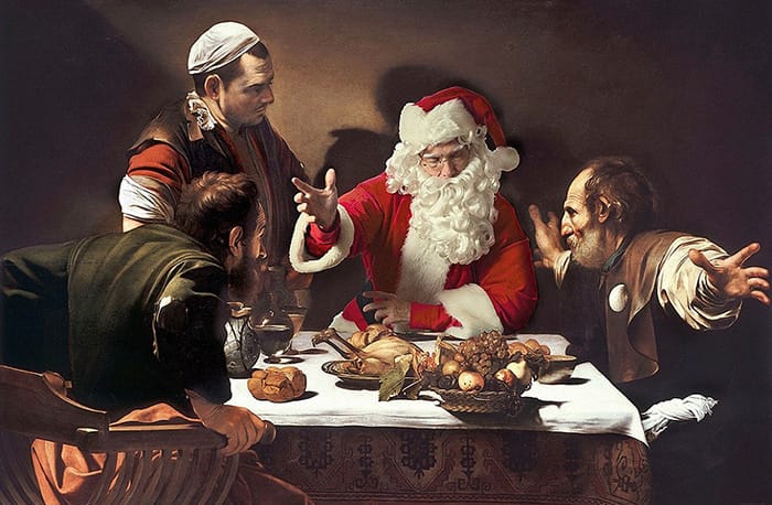 YAZI RESMİ: “Santa Classics” serileriyle tanınan fotoğraf sanatçısı Ed Wheeler yıllardır klasik, hatta kutsal sayılan tablolara “Noel Baba”yı montajlıyor. Tablonun orijinalliğini, gölge-renk dengesini bozmamaya özen göstererek, çok adımlı bir çalışmayla oradaki figürün yerine “Santa Clous”u yerleştiriyor ya da tablonun bir yerine ekliyor. Amacı orijinaline saygıda kusur etmeden gülümsetmek. Hem yazı, hem de içerdeki resim Wheeler’in düzenlemesi.