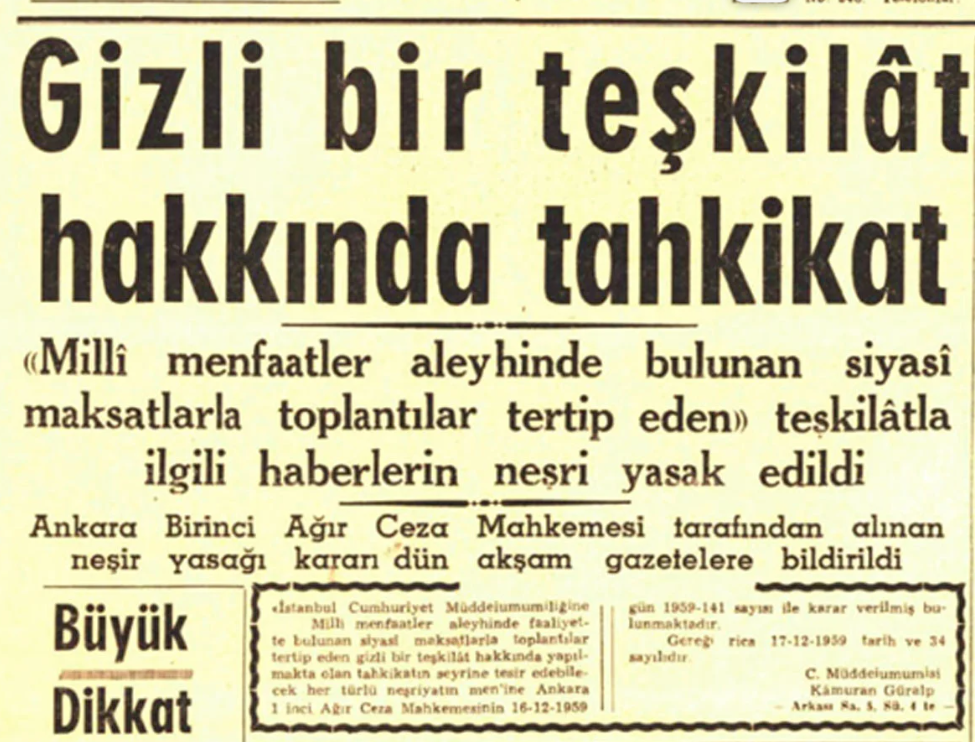 20 Nisan 1959 günkü gazetelerde “Gençlik içindeki gizli, yıkıcı, bölücü faaliyetlerle mücadele için Başvekillikte bir özel büro kurulduğu” haberleri çıktı. Aynı tarihlerde Emniyet’te İkinci Şube müdürlüğüne, daha sonra devletin Kürt meselesindeki kara kutusu haline gelecek Fatsa Kaymakamı Ergun Gökdeniz getirilmişti.