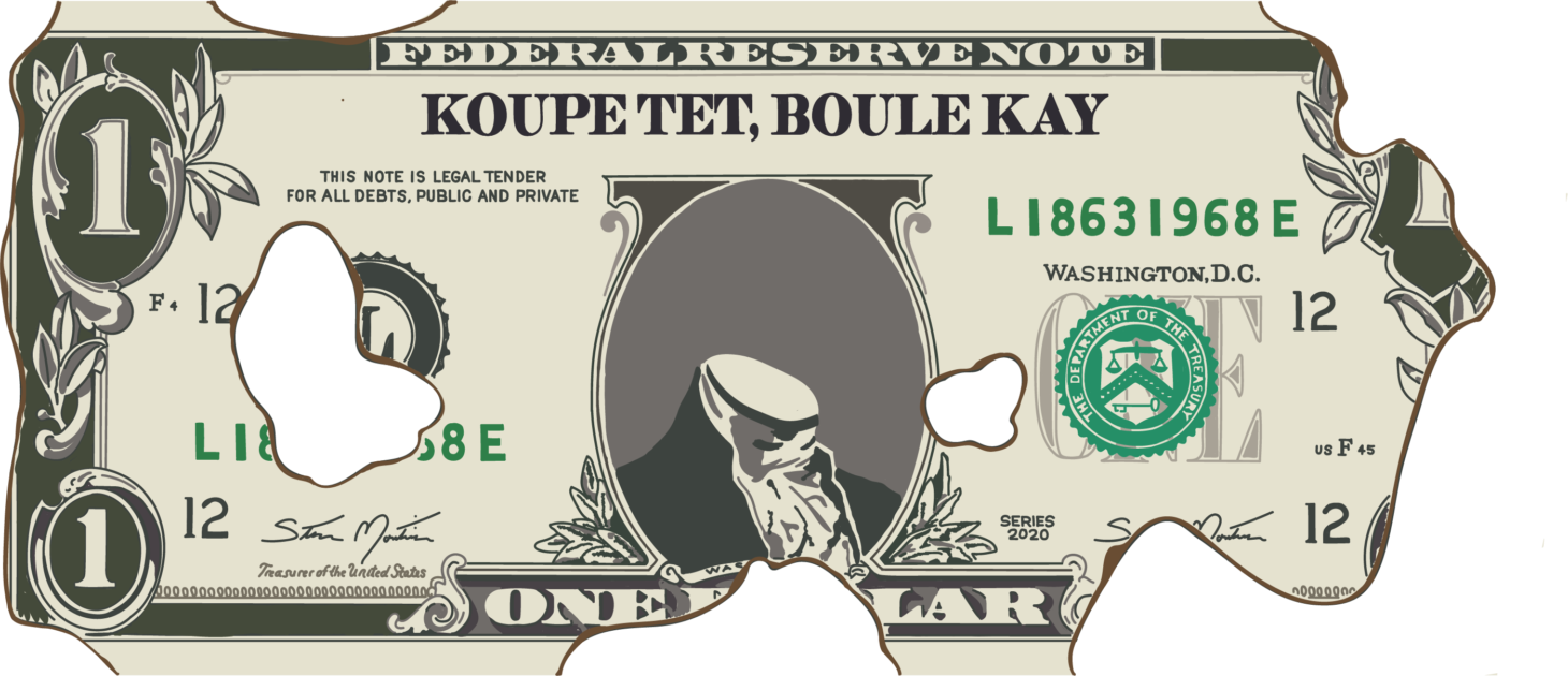 Steven Montinar, sergiye seçilen bir başka dijital sanatçı. Karmaşık duygular içinde olduğunu söylüyor. Eseri serginin tanıtım resmi olarak kullanılacağından, Whitney Müzesi kendisiyle diğer katılımcılardan önce iletişime geçmiş. Çizimi, kısmen yanmış bir dolarlık banknotu konu alıyor (2020). Üzerinde “Koupe Tet, Boule Kay” yazıyor. Bu, 1791 yılındaki Haiti Devrimi veya Haiti köle ayaklanmasının sömürgeci plantasyon sahiplerine karşı radikal sloganı: “Kesin kafalarını, yakın evlerini.” Çizimi yine Printed Matter tarafından seçilip web sitesinde ücretsiz, indirilebilir bir PDF olarak sunulmuş. Hemen bir hafta sonra Montinar Whitney Müzesi’nden sergide yer alacağını söyleyen bir e-mail alıyor. “Şu anda üniversitede son sınıftayım, bu yüzden Whitney’nin beni sergilemek istemesi çok büyük bir olaydı. Şu anda yaptığım şeylerin çoğu sırf teşhir için, çünkü hâlâ portföyümü oluşturuyorum” diyor. Ancak geçtiğimiz hafta boyunca diğer sanatçıların sergiyle ilgili eleştirilerini okumak, kendi katılımı üzerine düşünmesine neden olmuş: “Yaptığım işlerin doğası nedeniyle, bana benzeyen sanatçılarla ve insanlarla dayanışmaya girmemek yanlış olur, çünkü eserlerimi bu insanlar için yapıyorum. Kafam karıştı, çünkü bu serginin bir parçası olmak isterdim — ama ne pahasına? İnsanların yanında durmak benim için önemli. Birçok hareket, özellikle BLM hareketi, insanların sesinin duyulmamasından doğuyor.”