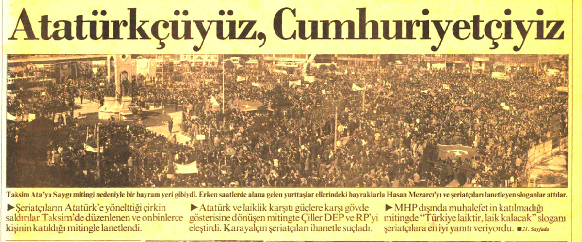 1993’de Uğur Mumcu’nun öldürülmesi, Meclis’e giren Refahlı bazı milletvekillerinin Atatürk ile ilgili sözleri, 94 yerel seçimlerine doğru giderken Refah Partisi’nin oylarındaki yükseliş laiklik hassasiyetini artırmıştı.