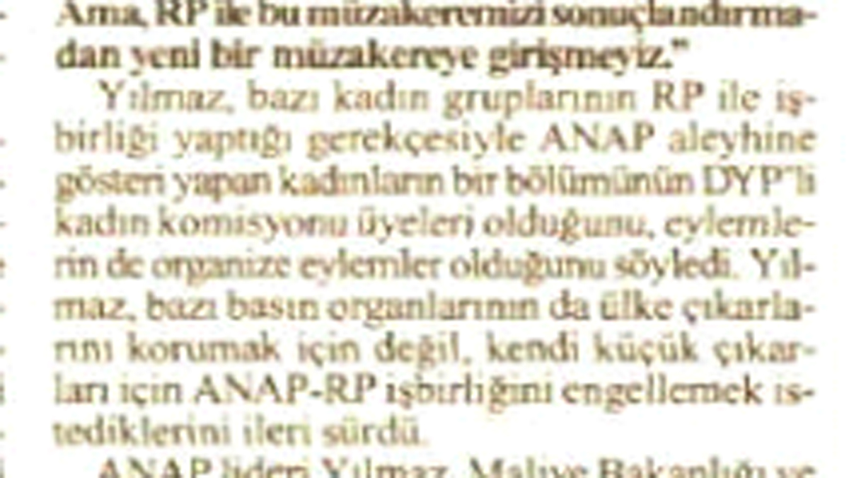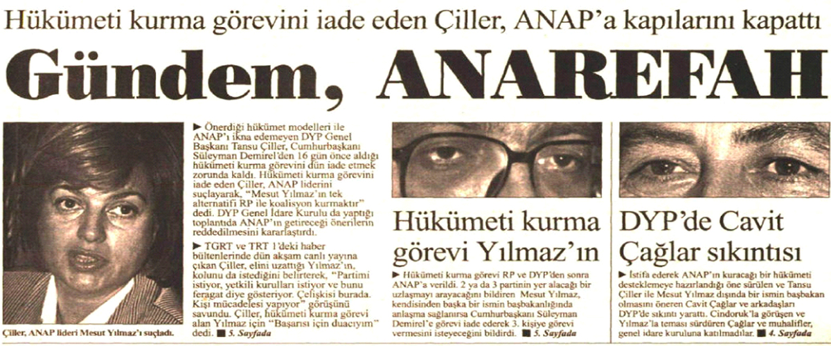Sıra Mesut Yılmaz’a gelmişti. Yılmaz’ın turlarında koalisyon kurmaya en yakın olduğu parti Refah Partisi oldu.