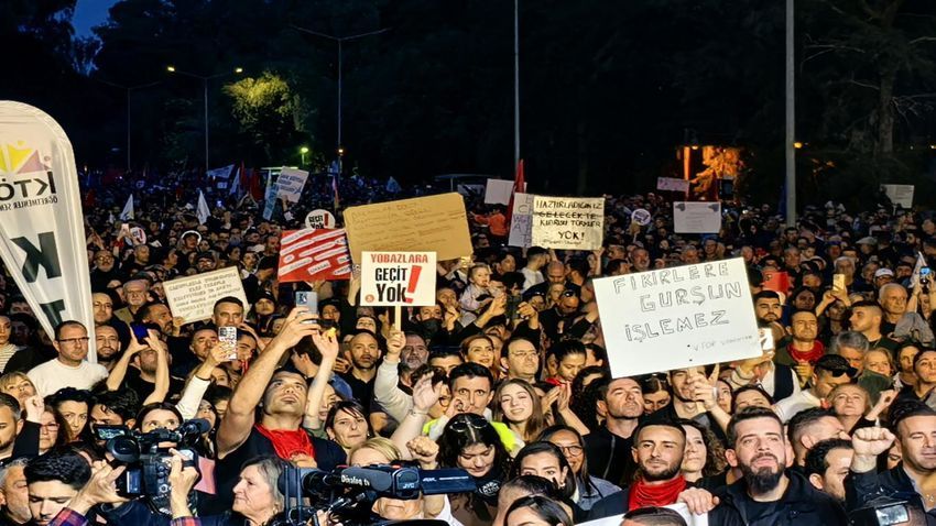 Türkiye’yi adada işgalci gören öğretmenler sendikası gibi solcu sendikalar, eski cumhurbaşkanı Mustafa Akıncı, anamuhalefet CTP ile koalisyon ortağı DP’nin eski başkanı, Rauf Denktaş’ın oğlu Serdar Denktaş, Dr. Fazlı Küçük’ün oğlu hatta bazı iktidardaki UBP milletvekili bile “Gericilere Geçit Yok” mitinginde yan yana geldiler.