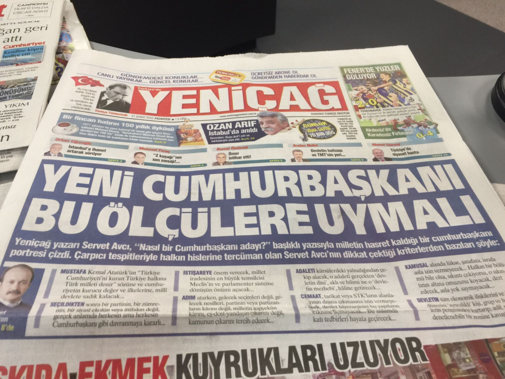 Yeniçağ yazarı Servet Avcı’nın, gazetesinin manşete çekerek sahiplendiği bugünkü (21 Şubat) yazısında sıraladığı yeni cumhurbaşkanı kriterleri şöyle:
