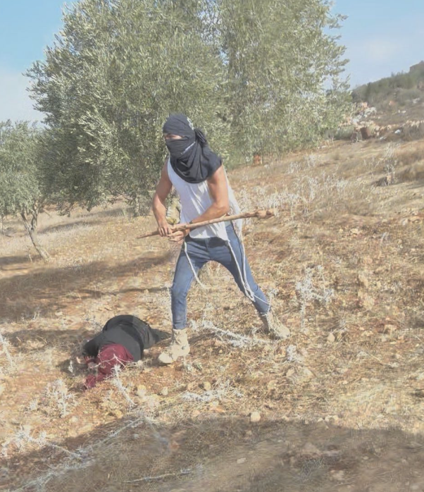 “Bu sabah Turmus Ayya’da zeytinliklerde saldırıya tanık oldum. Kadın yerdeydi, yardım etmeye çalışırken beni de kovaladılar” ifadelerini kullandı.