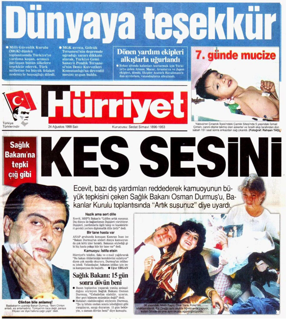 Hürriyet’in 24 Ağustos 1999 tarihli manşeti: “Kes Sesini.”