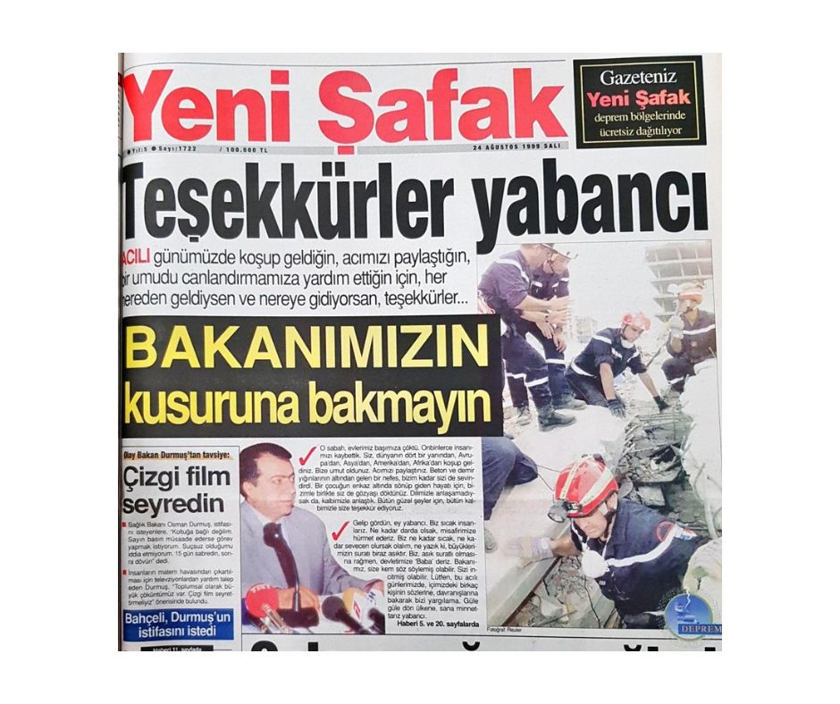Belki o dönemde “Nasıl bir Türkiye?” sorusunda asla anlaşamayacak Hürriyet ve Yeni Şafak gazeteleri Durmuş’un tutumunu eleştirmiş, yabancı yardımlar için teşekkür etmişti. En duygusal teşekkür ise Yeni Şafak’a aitti: “İçimizdeki birkaç kişinin sözlerine, davranışlarına bakarak bizi yargılama. Güle güle dön ülkene, sana minnettarız yabancı.”