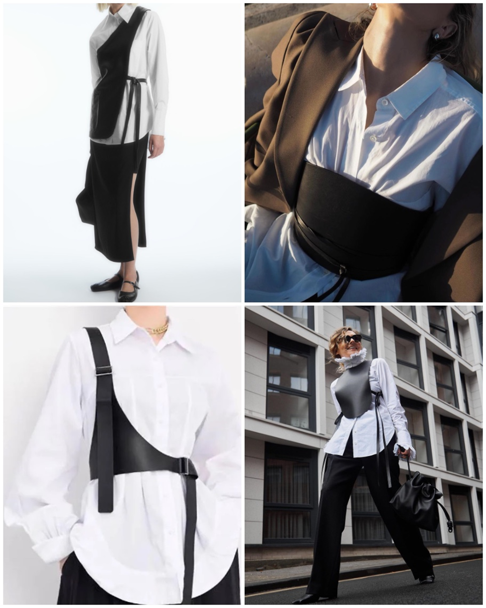 2023’te revaçta olan iddialı kemerler, derinin son zamanlardaki popülerliğiyle harmanlanarak 2024 koleksiyonlarında koşum (harness) kemerleri olarak yer buldu. Bu kemerleri eşleştirirken uygulayabileceğimiz küçük nüanslarla vamp ve frapan çizgiden maskülen klasik çizgiye, birbirinden çok uzak stillerde görünümler elde etmek mümkün. Hatta bu tarz kemerler, punk stilin de favori aksesuarlarından biridir.