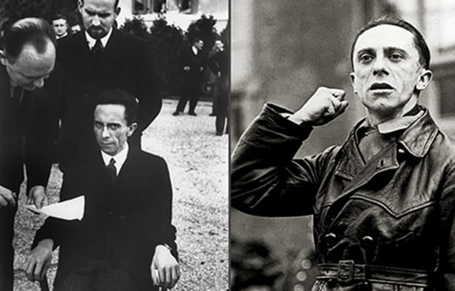 O ünlü fotoğrafın hikâyesi de çarpıcı. Eylül 1933’te Cenevre’de düzenlenen Milletler Cemiyeti Konferansı’nda Goebbels saygıyla, tedirgin bir reveransla kendisine sunulan bir notla ilgilenirken bir deklanşör sesi… Kaşları hemen kalkıyor.