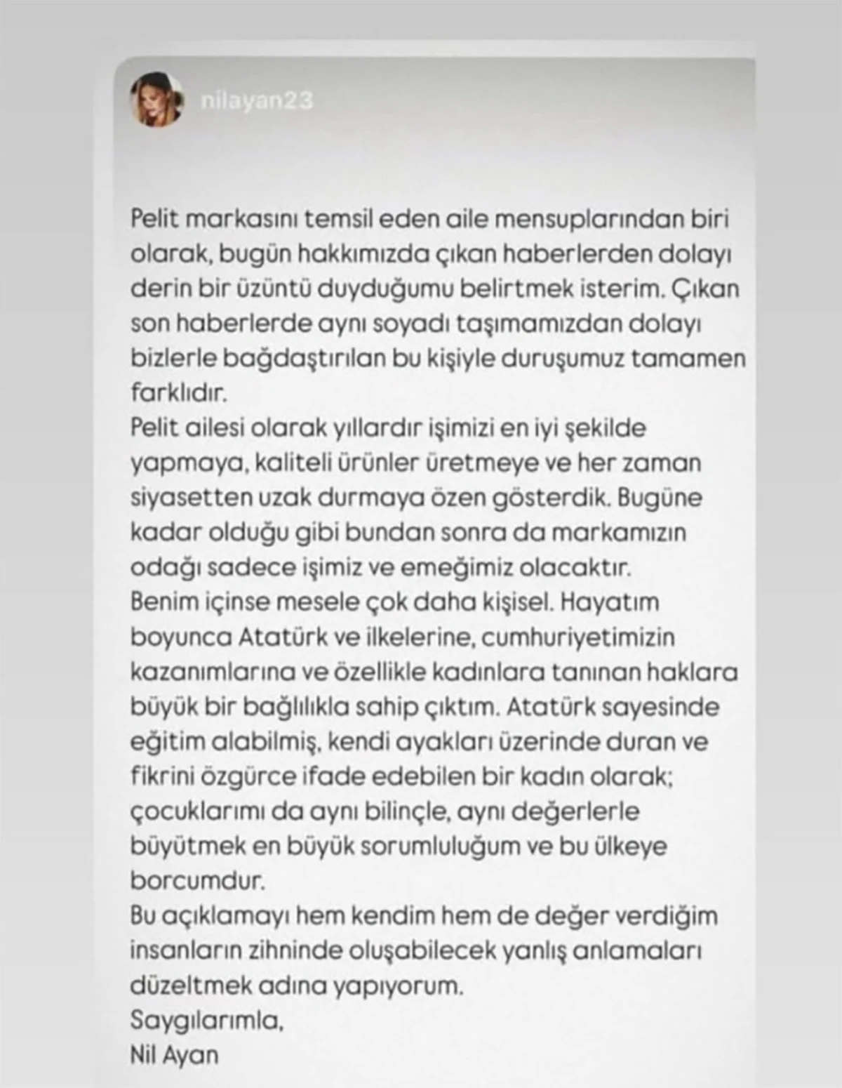 Ama onlarla ilgili haberler çoktan “Pelit’in sahibi Selahattin Ayan’ın kızı AK Partili Nilhan Ayan boykota karşı mesaj yazdı, Pelit de boykot listemize girdi” diye üç dünya turu yaptı.