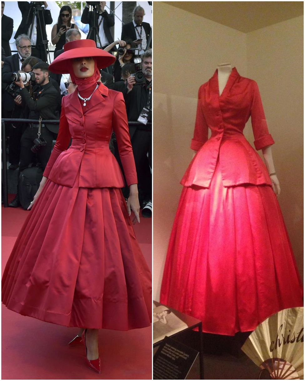 Kırmızı halı kostümü için ilhamını Dior’un New Look’undan alan bir diğer star da başörtülü model Rawdah Mohamed’di. Baştan aşağı kırmızılar giyen Rawdah’dan başkasının zor taşıyacağı bu kıyafetin tasarımcısı Cecilie Bratsberg Melli. Dior’un 1954 tarihli “Zemire” takımına benzerliği dikkat çekiciydi.