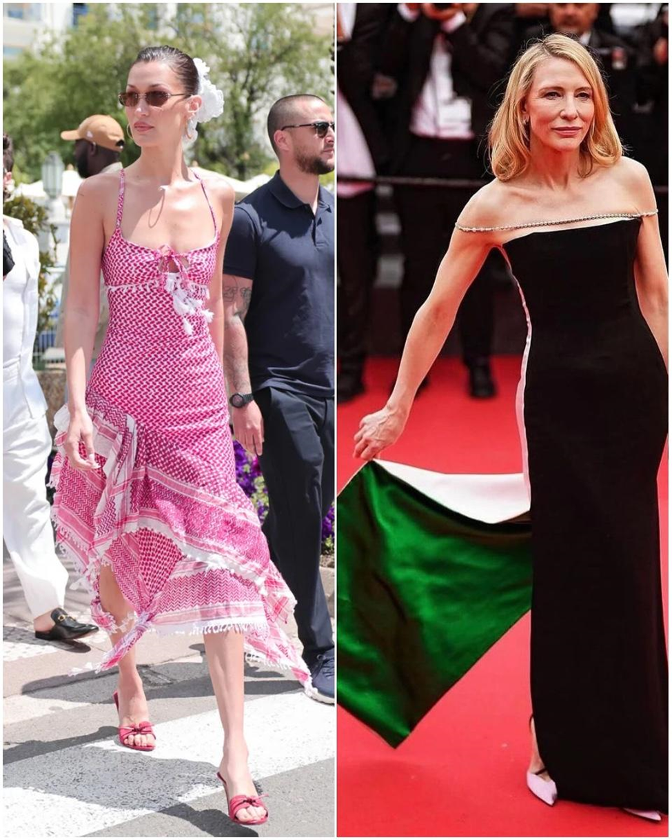 Bella Hadid kefiye kumaşından dikilmiş kıyafetiyle ve yaptığı açıklamalarla Filistin’e desteğini ifade etti. Cate Blanchett ise bayrak yasağını kırmızı halıyla bir bütün halinde Filistin bayrağını anımsatan bir elbise giyerek deldi. Her ne kadar elbisenin beyaz görünen yerleri aslında çok açık pembe olsa da, genel olarak bakıldığında ve Blanchett’in bu konuda daha önce yaptıkları göz önüne alınınca niyet bariz gibi duruyor. Oyuncu geçtiğimiz Kasım ayında Avrupa Parlamentosu’nda Gazze için acil ateşkes çağrısı yapmıştı. Yine Hollywood starlarının ateşkes talep ettikleri bir çağrı metnine de imza atmıştı.