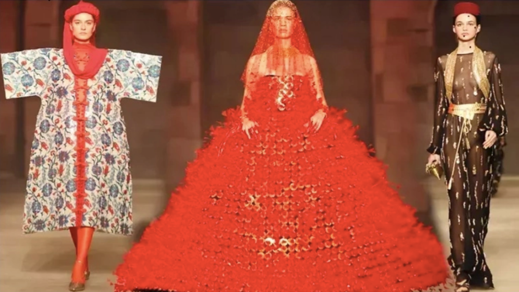 Özgür Masur’un 2020’de “ilk imza koleksiyonum” dediği Byzantium da bu kutuplaşmanın diğer ucundan tepki çekmişti. “Vay efendim Bizans özentisi bunlar, yerli ve milli değiller” minvalinde yorumlar olmuştu. Cumhuriyetimizin 100. Yılında hala “şu giyim bizi temsil etmez, şu giyim eder, şöyle giyinen Cumhuriyet kadınıdır, şöyle giyinen Cumhuriyet düşmanıdır” gibi, derinlikten uzak argümanlar ülkeye fayda getirmiyor. Geçmişte de, bugün de türlü türlü giysilerin var olduğu bir ülkeyiz. Kimse de giydiğiyle veya giydirdiğiyle Cumhuriyeti temsil etmekle yükümlü değil, hele de bu tetiklenen sosyal medya kullanıcılarının tahayyülüne uygun şekilde temsil etmekle hiç yükümlü değil. Tabii bunların ardında, devleti, “vatandaşların ona layık olması gereken, layığıyla temsil etmemiz beklenen yüce bir şey, bir kutsal” olarak görmenin de payı olabilir, bu pilav daha çok su kaldırır, herhalde bir moda-sanat yazarına da bunları izah etmek düşmez. Fakat şunu da söylemeden geçemeyeceğim; Cumhuriyetimizin değerleri, ortak hikayemizi üzerine inşa ettiğimiz, edeceğimiz temeller bu kadar sığ değildir, olmamalıdır da. Bu koleksiyon vesilesiyle bir kez daha kutuplaşma ve kimlik siyasetinin rasyonellikten uzak, baskıcı yaklaşımla, kreativiteyi, üretkenliği, ülke potansiyelini boğma teşebbüsüne tanık olduk.