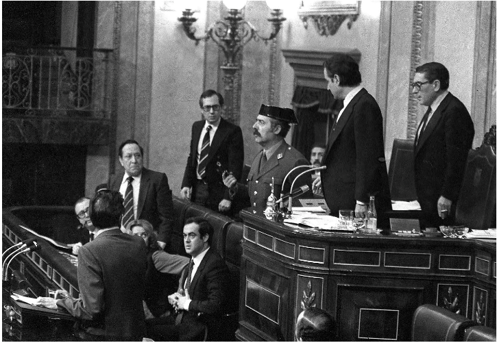 O ‘an’ milletvekili Manuel Nunez Encabo’nun isminin okunduğu anda başlar. Encabo oyunu kullanamaz, ya da sesi duyulmaz çünkü isminin okunduğu sırada salonun sağ kapısından gelen bir haykırış bütün sesleri bastırır. Cercas, Meclis kameralarından olanları şöyle aktarır: