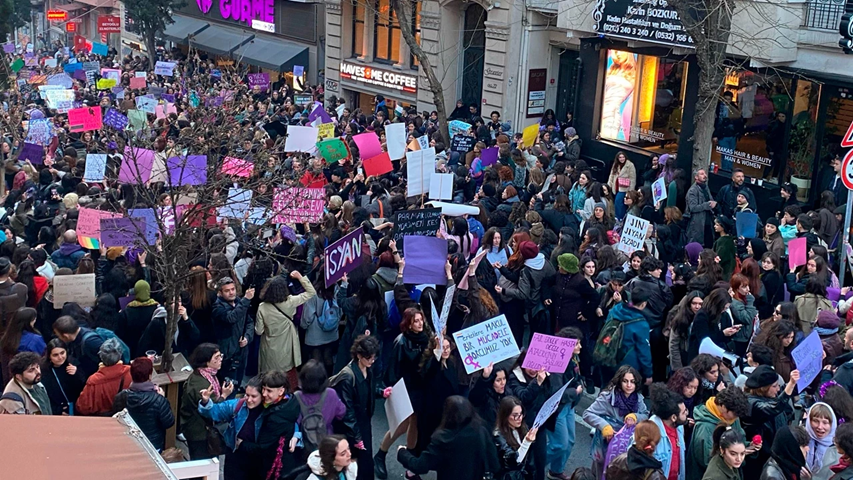 25 Kasım günü İstanbul’da İstiklal Caddesi yürüyüşe kapatıldı. Kadınlar barikatları aştılar. İstiklal’e çıktılar ve yürüdüler. Kadınlar, neredeyse ülkemizin bütün şehirlerinde gösteriler yaptılar, erkek şiddetini protesto ettiler. Ankara’da Yüksel Caddesi’nden Meşrutiyet Caddesi’ne yürüdüler. İzmir’de Penguen Kitabevi önünde toplandılar. Cadde üzerinden sloganlar eşliğinde Türkan Saylan Kültür Merkezi’ne yürüdüler. Samandağ’da “Her gün yeni bir kadın cinayeti haberi duyuyoruz. Kadınlar şikâyet ettikleri hâlde korunmuyor, fail erkekler mahkemelerde ‘tahrik’ ve ‘iyi hâl’ indirimleriyle ödüllendiriliyor. Failleri değil kadınları koruyun. Bu düzene baş kaldırıyoruz!” dediler. İskenderun’da gösterici kadınlar şunları söyledi: “Yanı başımızdaki Suriye’de de Alevi, Dürzi kadınlar kaçırılıyor; tecavüzler, katliamlar yaşanıyor; köle pazarlarında satılmak da dâhil şiddetin her türüne maruz kalıyorlar.” Kocaeli’nde Merkez Bankası önünde toplandılar.