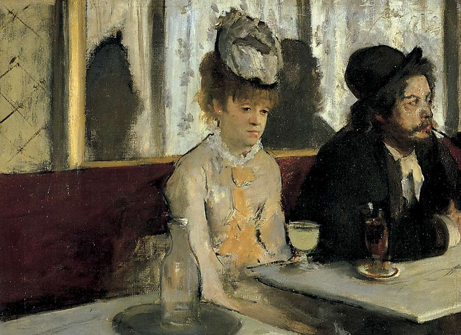 YAZI RESMİ: Edgar Degas’ın 1875-76’da yaptığı “L’Absinthe” tablosundan bir kesit. (Çoğunlukla ‘Absent İçenler’ mealinde çevrilmiş.)