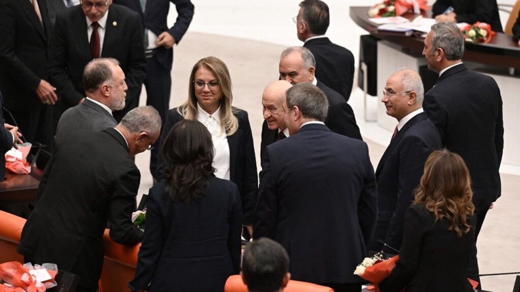 MHP lideri Devlet Bahçeli, Meclis’in yeni yasama yılı açılışında TBMM’de DEM Parti milletvekillerinin bulunduğu sıralara yöneldi ve ellerini sıktı. Bahçeli’nin DEM Parti’ye yönelik tavırları herkesin malumu. Bu, açıktan bir siyasi jest. Kendisi Cumhurbaşkanı’nın “birlik” çağrısına destek vermek amacıyla bu adımı attığını dile getirdi. Şimdiye kadar sorunun çözümü konusunda hükümetten ne zaman sert bir çıkış gelse MHP’ye mal ediliyordu. Bu kez çıkış MHP’den geldi. Nasıl yorumlarız?