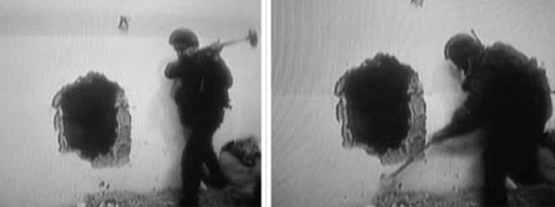 Nablus’a 2002 yılında yapılan bir baskından sonra Naveh’in İsrail ordusunun yaptığı manevrayı “ters geometri” olarak tanımlaması bu noktada oldukça ilginç. Çünkü askerler, operasyonun hareketini belirleyecek olan kentsel dokuların hiçbirini takip etmiyorlar. Operasyon alanına ulaşabilmek için cadde, sokak hatta iç merdiven ve pencerelerden de uzak durarak birbirini takip eden özel mülklerin duvarlarına tüneller açıyorlar. Bir eve giriyor bir anda duvarda devasa bir boşluk açıp diğer eve doğru ilerliyorlar. Bu şekilde, Nablus’ta 100 metreyi bulan devasa iç mekan patikaları oluşturuyorlar.