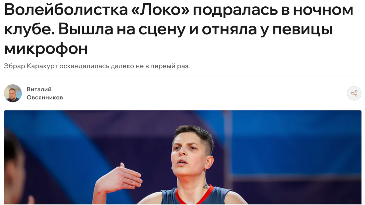 İddiaları teyitli haber gibi paylaşan, fotoğraf seçiminden kullanılan haber diline profesyonel bir itibarsızlaştırma haber başlığı: “Loko’lu bir voleybolcu gece kulübünde kavga etti. Sahneye çıktı ve şarkıcıdan mikrofonu aldı”