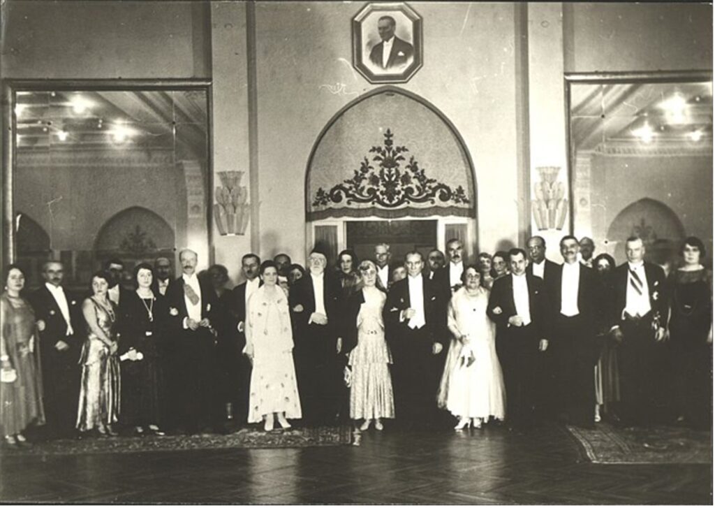 - Elena Venizelos eşi Elefterios Venizelos’un 1930 yılındaki Türkiye ziyareti sırasında Ankara Palas’taki resepsiyonda Atatürk’ün kolunda.